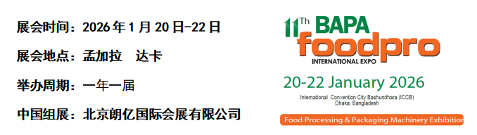 2026 孟加拉国际食品加工及包装展(BAPA FoodPro 2026)是南亚地区食品饮料加工与包装领域的标杆性国际盛会,同时也是孟加拉唯一的食品饮料加工机械专业展会,将于 2026 年 1 月 20 日至 22 日在孟加拉首都达卡的国际会议城市巴顺达拉(ICCB)盛大举办。本届展会由 Extreme Exhibition & Event Solution Ltd 联合孟加拉食品加工协会(BAPA)等权威机构共同主办,以 “可持续发展的加工和包装,让我们的世界更美好” 为核心主题,聚焦行业技术创新与绿色转型,为全球企业搭建开拓南亚市场的核心对接平台。