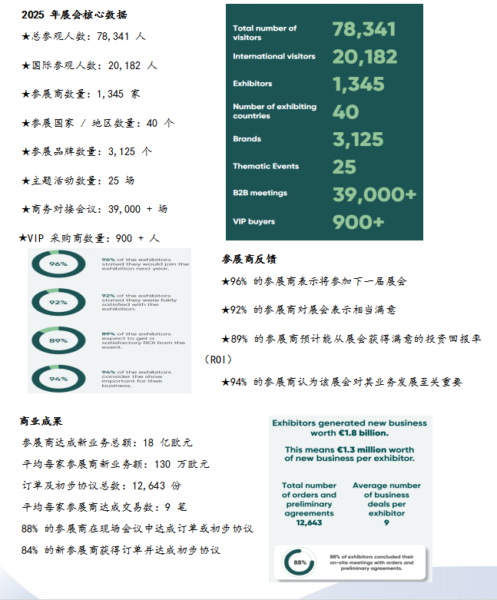 1.精准商贸对接:直面 900 + 全球 VIP 买家、7.8 万 + 专业观众,涵盖食品批发、制造、零售、餐饮等全渠道采购群体,高效达成订单转化与合作意向,平均每家参展商可收获 9 笔业务成交;
